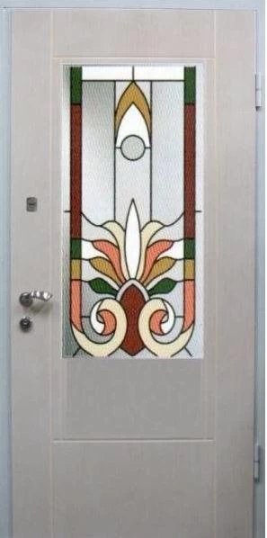 Входные двери в Перевозе с применением декора витражом изготавливаются из стального профиля, придающего прочность конструкции, а сама витражная вставка обладает высокой взломостойкостью, поскольку для витражных композиций используется специальное стекло, обработанное особым образом. Усилить надежность витражного элемента можно с помощью использования декоративных кованных решеток.
