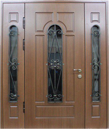 Поговорим об отделке. Вариантов декора дверей много. В большинстве случаев, для отделки элитных дверей используется массив натурального дерева или натуральный шпон с фрезеровкой. Цвет двери так же делается по желанию заказчика. Очень красиво и представительно выглядят двери с ковкой и стеклом.
