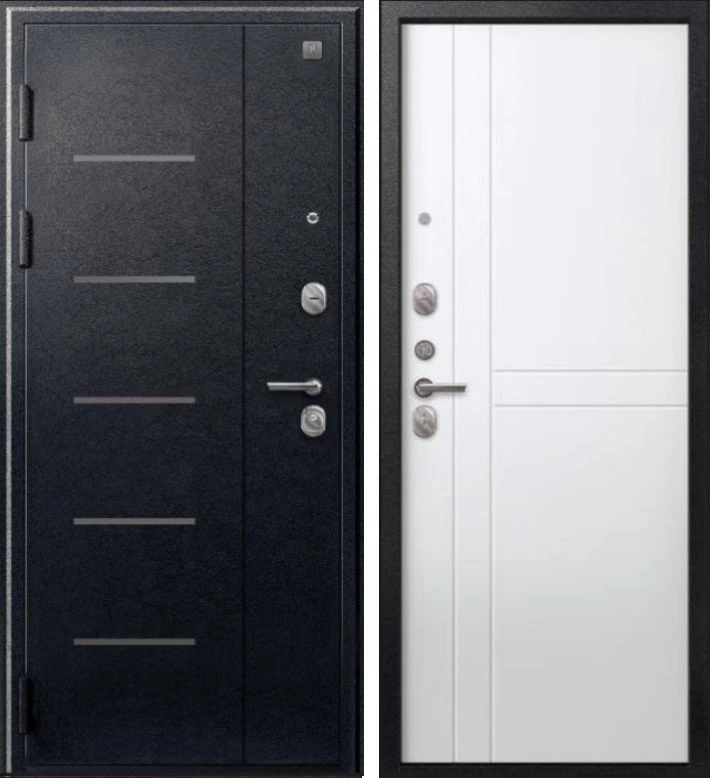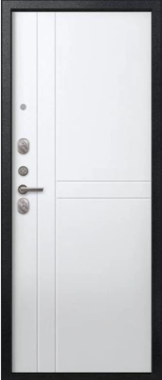 Надежная входная Дверь V-06 Черный муар - Белый премиум класса по цене 38 633 руб. Большая толщина стали защитит от проникновения в ваш дом, квартиру или коттедж. Используется очень качественная фурнитура: замки, цилиндры, ручки, защелки. Покрытие и отделка двери изготовлено под внимательным контролем производителя. Дверь имеет долгий срок службы и гарантию.